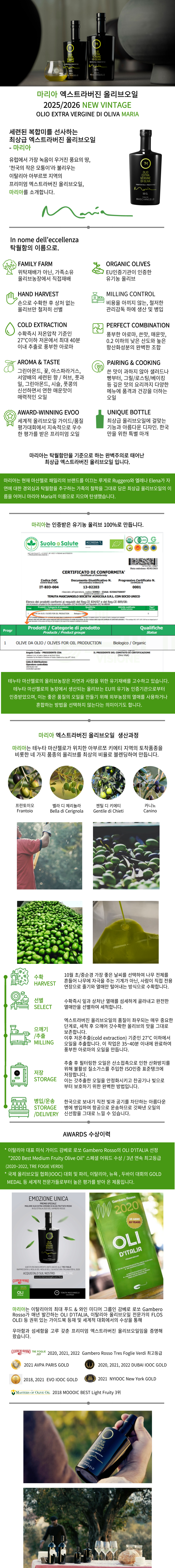 [NEW VINTAGE]500ml 마리아 프리미엄 엑스트라버진 올리브오일 2025/2026