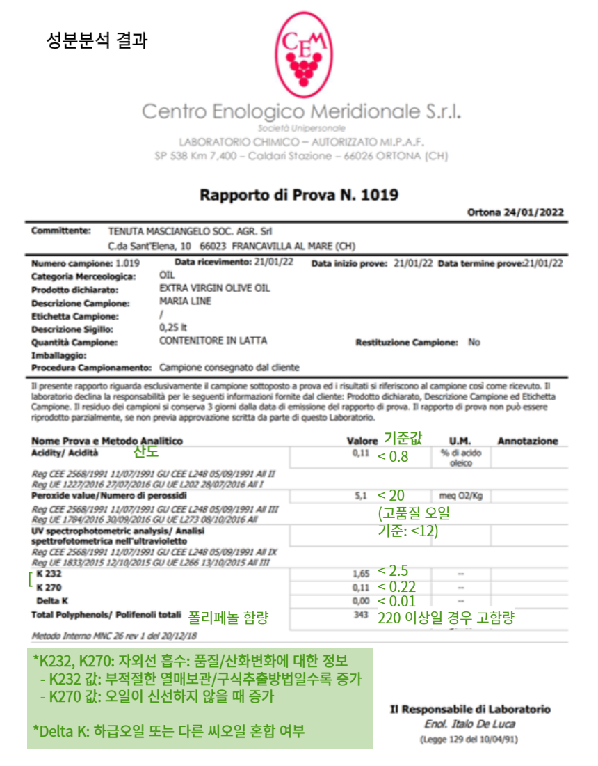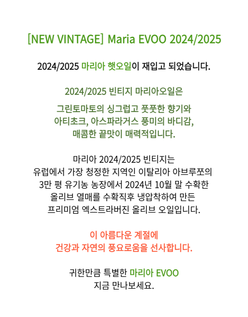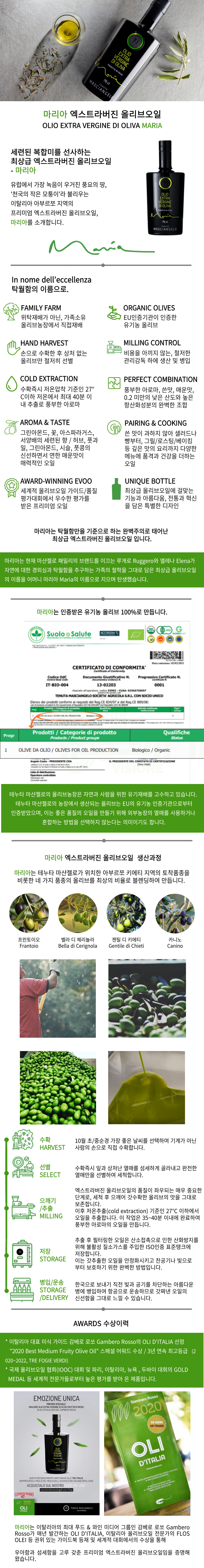 2병 x 500ml 마리아 프리미엄 엑스트라버진 올리브오일 2024/2025